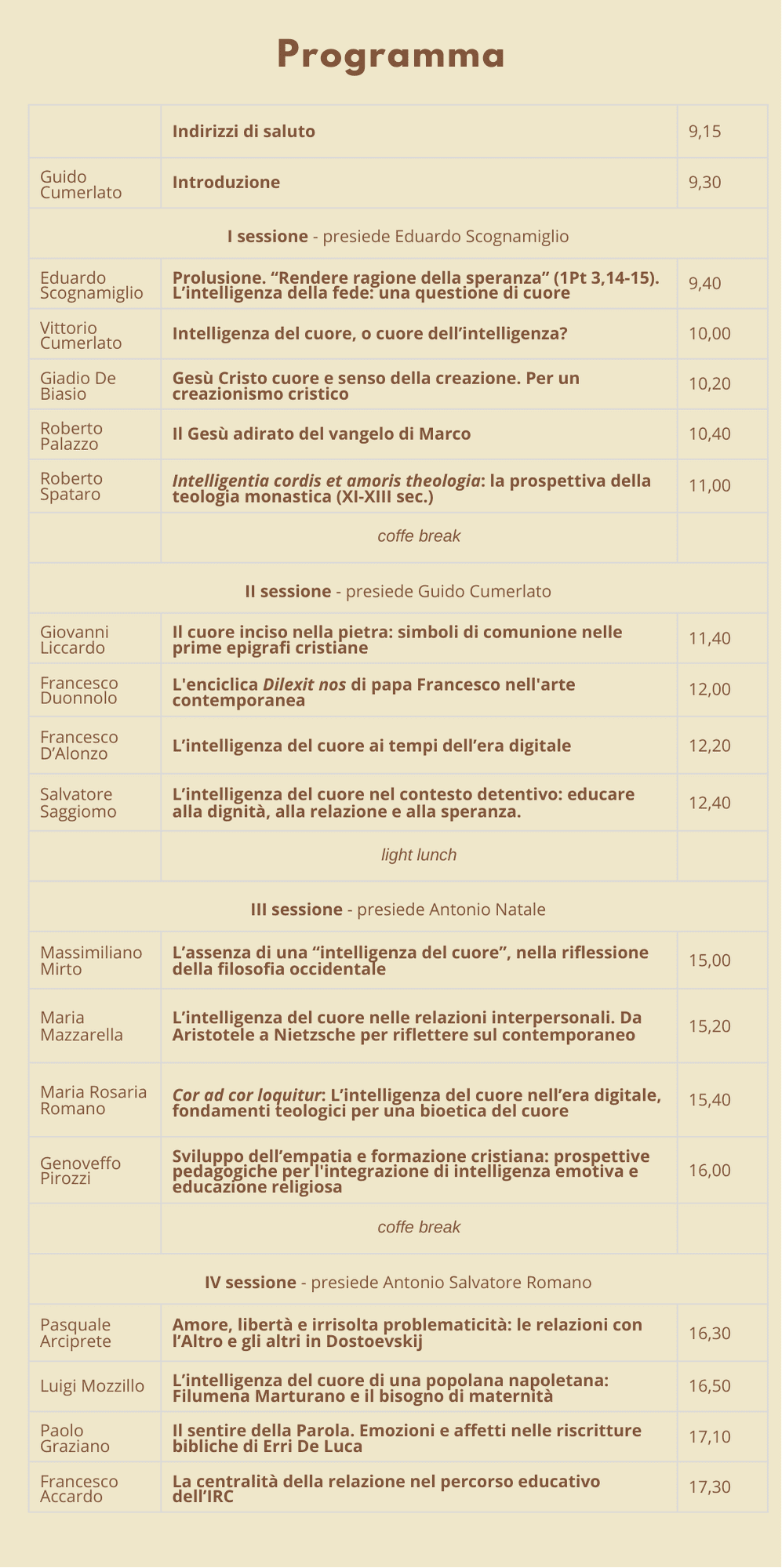 OrarioCandidato/aTesiRelatore – CorrelatoreTesario10,00Della Corte ArmandoIl Sommo Essere di Anselmo d’Aosta nel mondo contemporaneo: quale libertà?Mazzarella – Arciprete LICENZA10,30GirardiGiuseppeL’annuncio di fede attraverso MariaDuonnolo – Di Nardo1-6-8-1411,00Mashema Jean PierreLa missione della Chiesa “in uscita” nella prospettiva della nuova evangelizzazioneDuonnolo – Cumerlato 3-10-11-12PAUSA11,45Iodice AntoniettaConflitti relazionali e forme di riconciliazione. Analisi psicosociale dei testi biblici e prospettiva pedagogico-didatticaLorusso – Graziano LICENZA12,15SantonastasoAngela«Brillerà come luce la tua giustizia» (Sal 37). Testimonianza e martirio nella lotta della… Read More