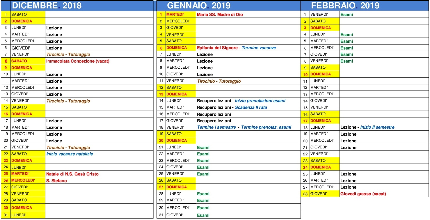 • Calendario Accademico