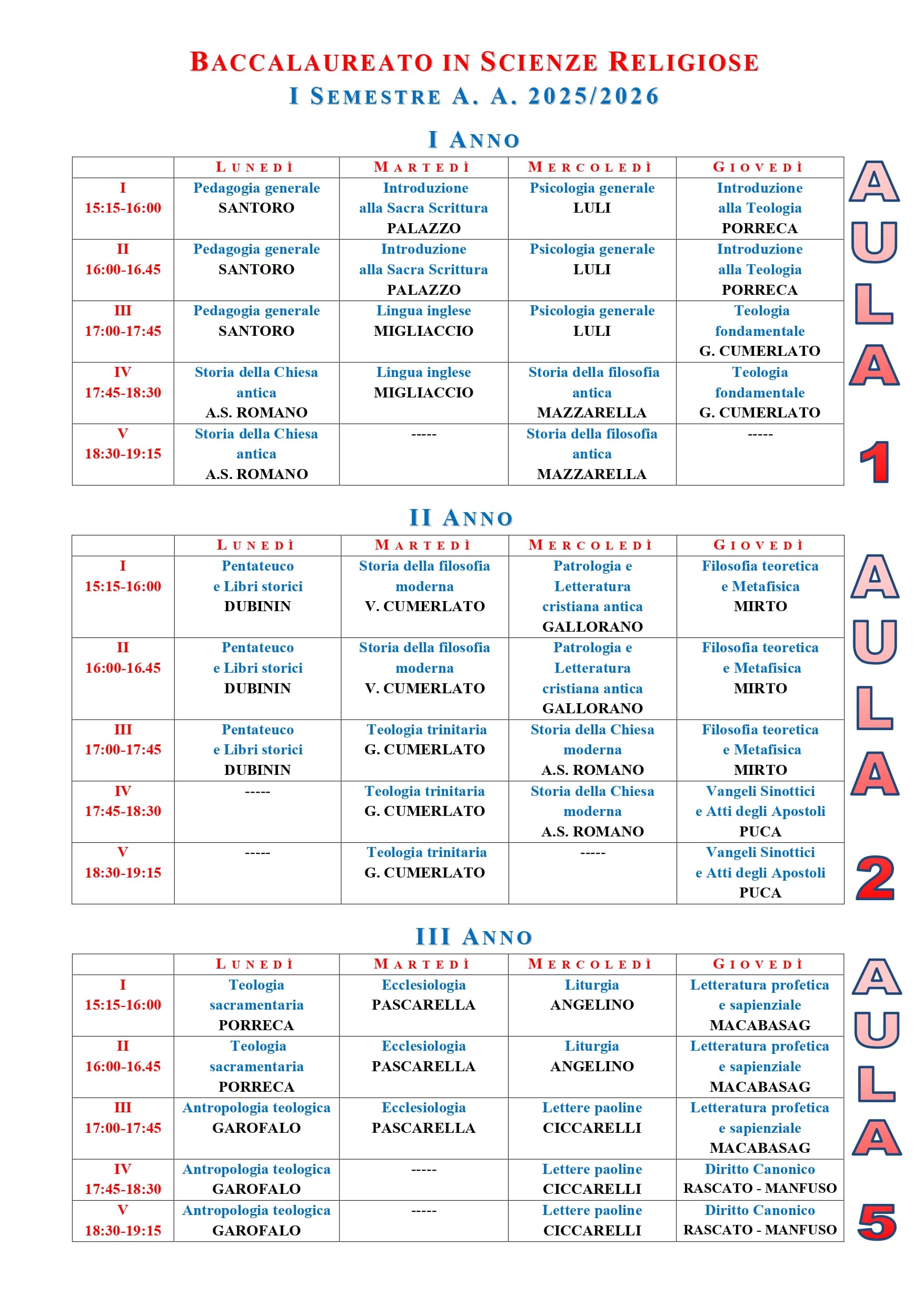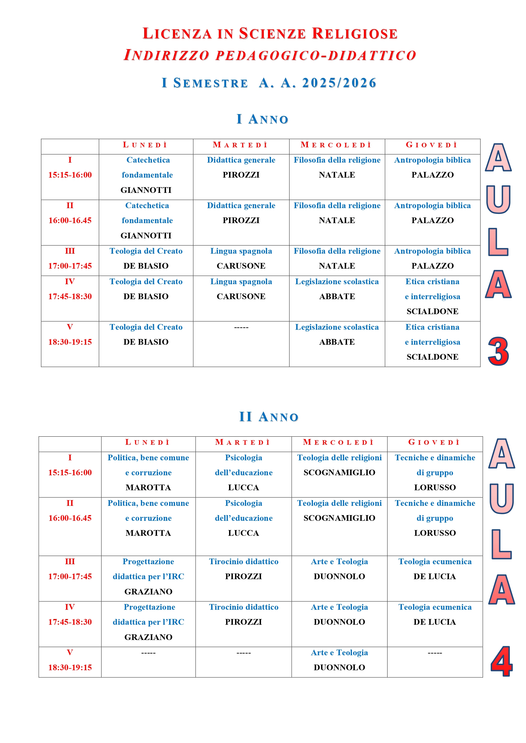 Orario lezioni ISSR AREA CASERTANA - A.A. 2025-2026 - Orario lezioni I semestre - Licenza ISSR AREA CASERTANA - A.A. 2025-2026 - Orario lezioni I semestre - Baccalaureato ISSR AREA CASERTANA - A.A. 2025-2026 - Orario lezioni I semestre